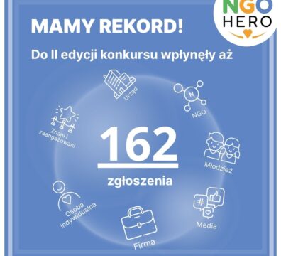 Mamy rekord zgłoszeń do konkursu NGO HERO. W tegorocznej edycji otrzymaliśmy aż 162 zgłoszenia, co jest dla nas ogromnym powodem